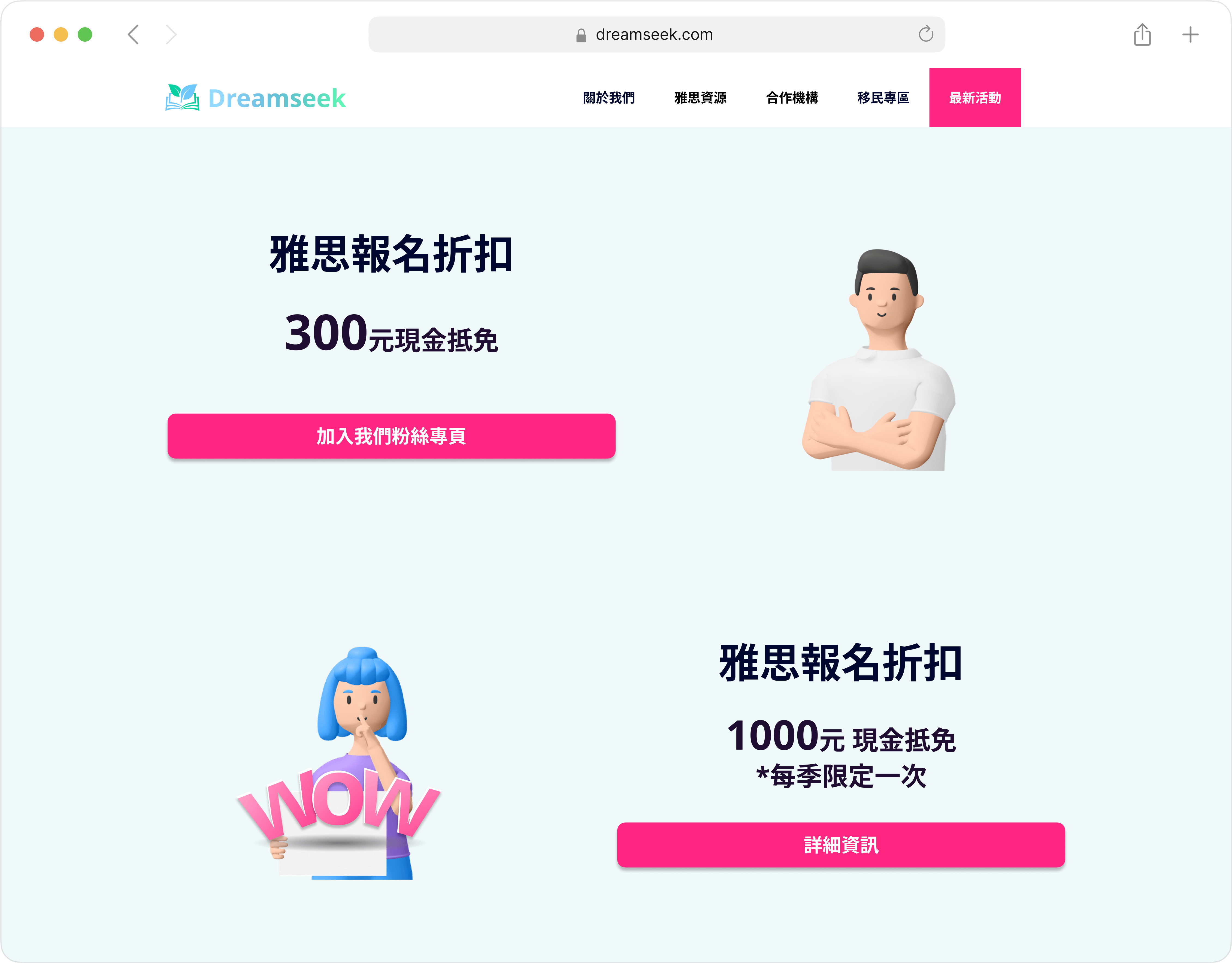 Dream seek is a non-profit IELTS preparation study group for preparing for their English exams and students ready to study abroad.
